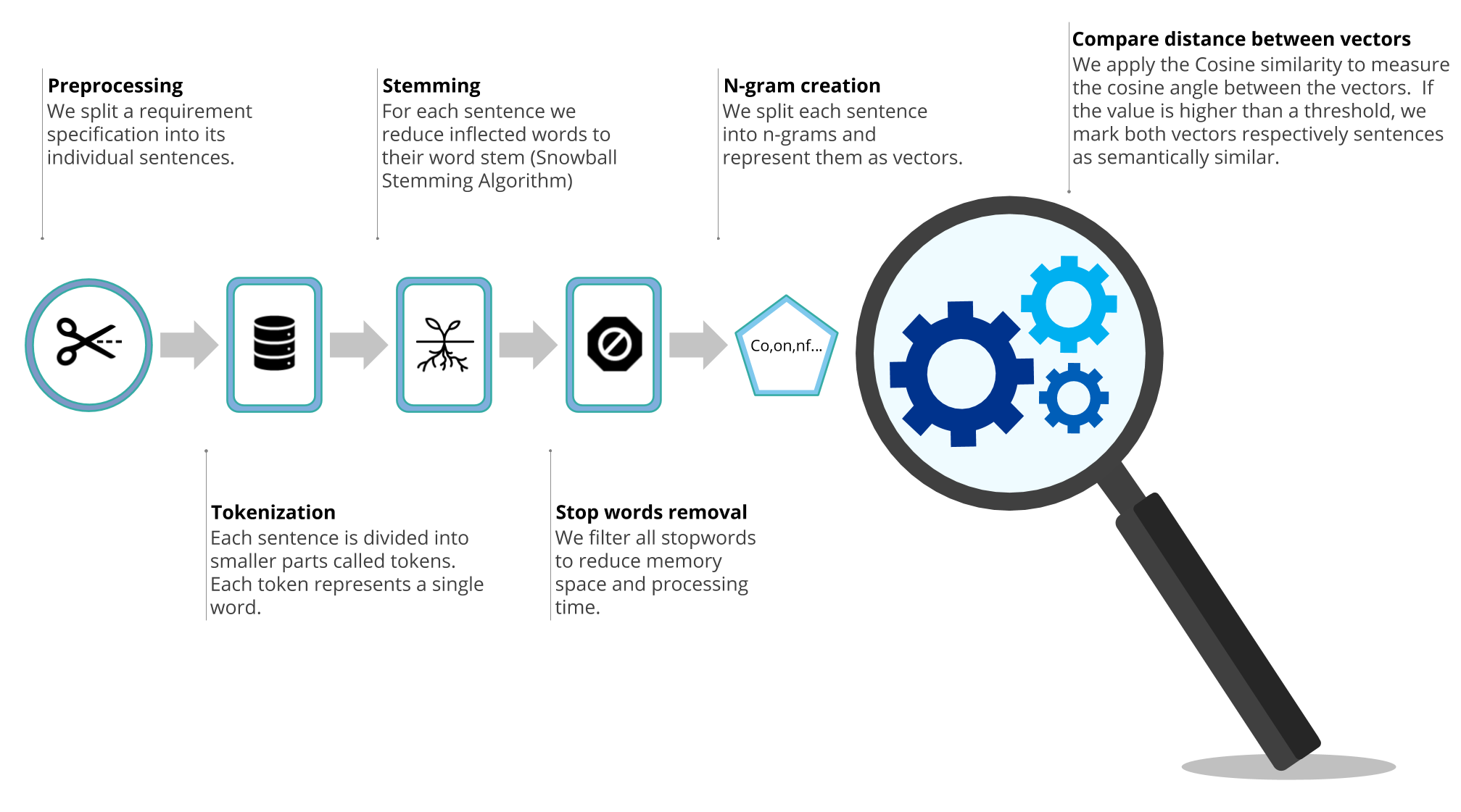 Semantic duplicates can happen because we think one specific instruction is so important that we simply have to repeat it. But often semantic duplicates arise from simply copy-pasting text. First, semantic duplicates can lead to inconsistency within the requirements. In detail, if there are two similar sentences that explain the same requirement, the same requirement can be interpreted in two different ways. Second, if the sentences are not just similar, but rather a copy of each other, it makes the copy simply superfluous. However, semantic duplicates are redundant, which is why we decided to tackle this problem.