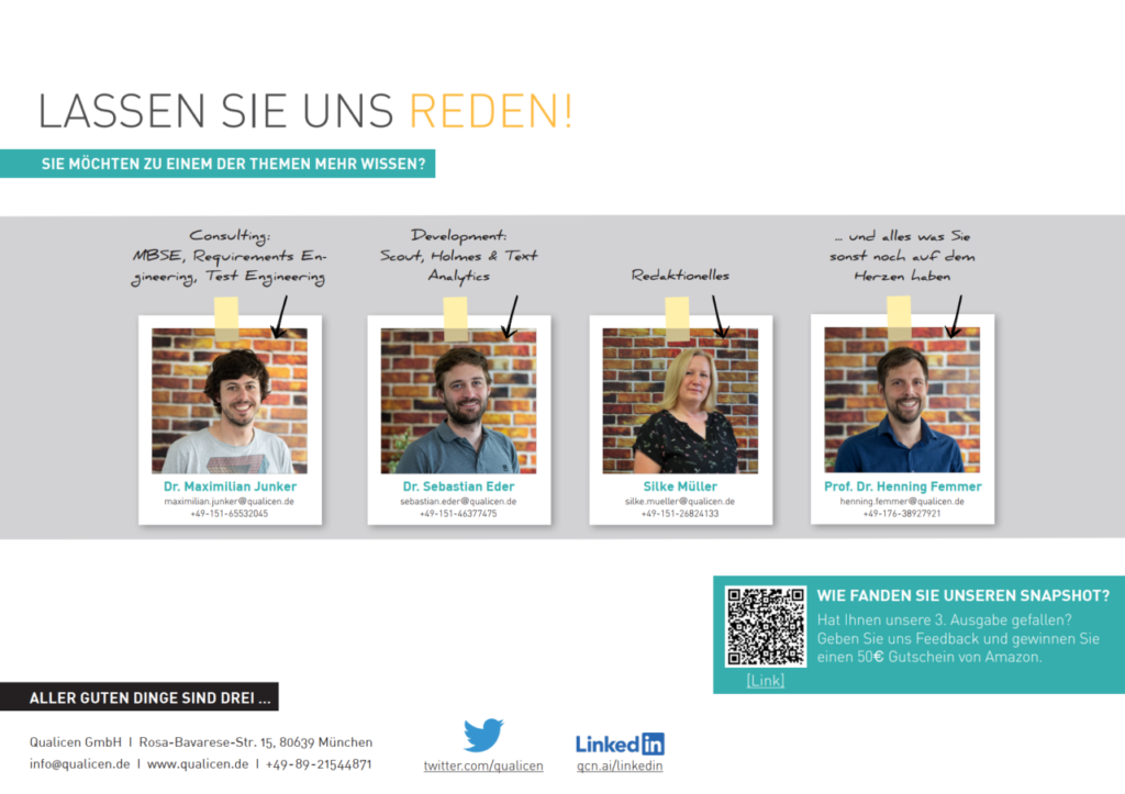 Wir freuen uns wieder auf Ihr Feedback zur aktuellen Ausgabe unter diesem Link. Mit etwas Glück gewinnen Sie dafür dieses mal einen Amazon-Gutschein im Wert von 50,- €!
